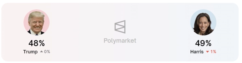 앞서 지난 11일 폴리마켓에서 해리스 부통령의 승리 확률은 52%를 기록, 트럼프에 6%포인트 앞서며 추월하는 모습을 보였다. 현재는 폴리마켓에서 해리스의 승리 확률은 49%, 트럼프는 48%로 예측되고 있다.