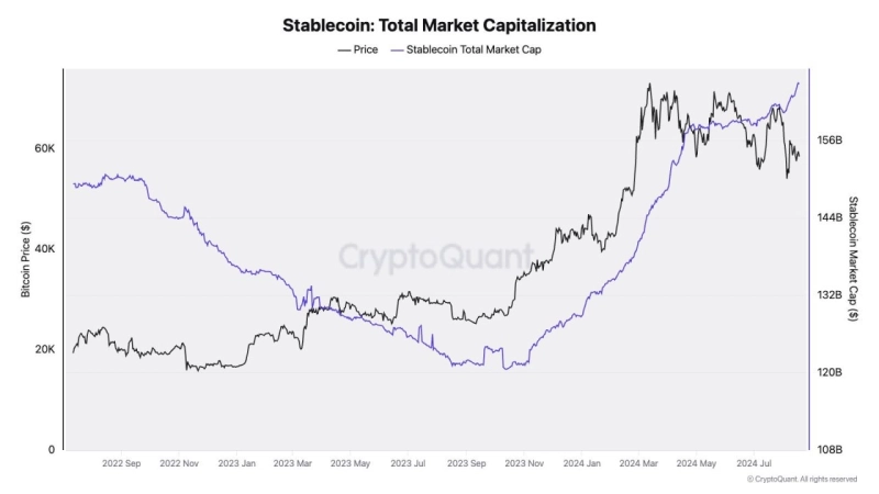 스테이블코인 시가총액이 사상 최고치를 달성해 가상자산(암호화폐) 시장의 유동성이 높아졌다는 분석이 나온다.