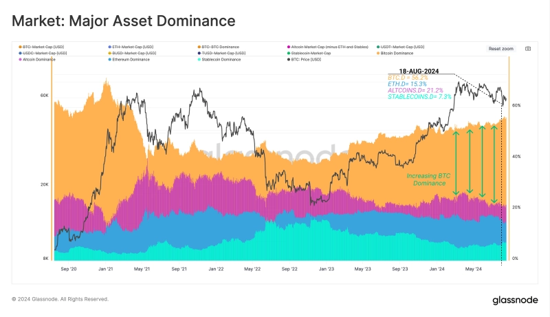 - 비트코인 도미넌스가 지난 사이클 저점 이후 17.5% 증가하여 56.2%를 기록했다고 밝혔다.