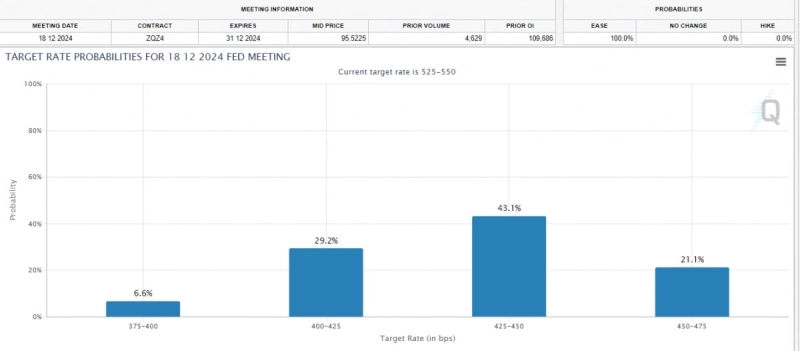 이는 Fed의 금리인하를 정당화하는 조건들이다. 다만 0.25%포인트가 아니라 빅컷(0.50%포인트 인하)를 정당화하기에는 다소 부족하다. 선물시장은 올 연말까지 당초 전망했던 0.75%포인트가 아니라 1.00%포인트 인하에 대한 기대감을 키워가고 있다. 시카고상품거래소(CME)가 선물시장 가격을 바탕으로 시장 참가자들의 정책금리 전망을 집계한 페드워치툴에 따르면 21일 오후 5시(미 동부시간 기준) 시장에서는 올 연말 12월 FOMC까지 정책금리가 지금보다 1.00%포인트 인하할 가능성을 43.1%로 가장 높게 보고 있다.
