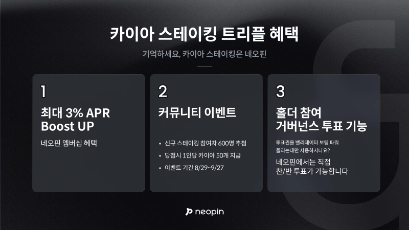 네오핀, 카이아를 스테이킹하면 ‘트리플 혜택’ 제공