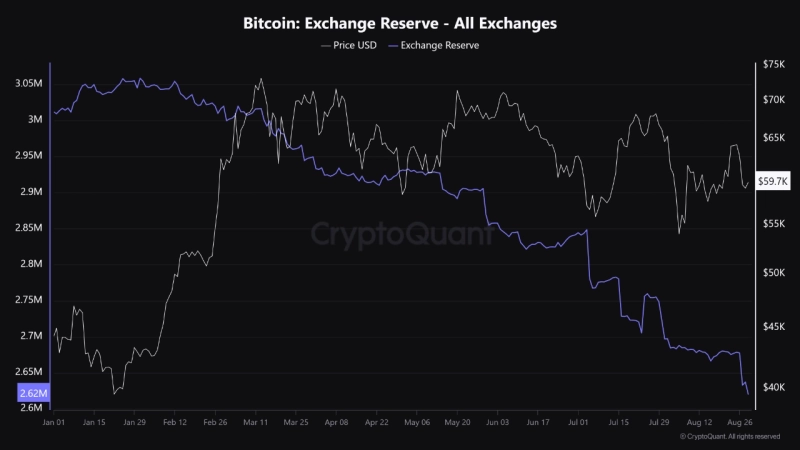 주요 가상자산(암호화폐) 거래소가 보유한 비트코인(BTC)이 감소세를 기록하며 올 들어 최저치를 경신했다. 최근 비트코인의 매도 압력이 감소하면서 향후 상승세에 힘을 실어줄 수 있다는 분석이 나온다.