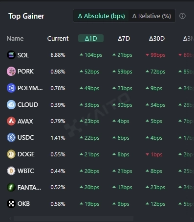 이밖에도 투자자들은 USDC, 도지코인(DOGE), wBTC, 판타지탑, OKB 등에 관심을 보였다.