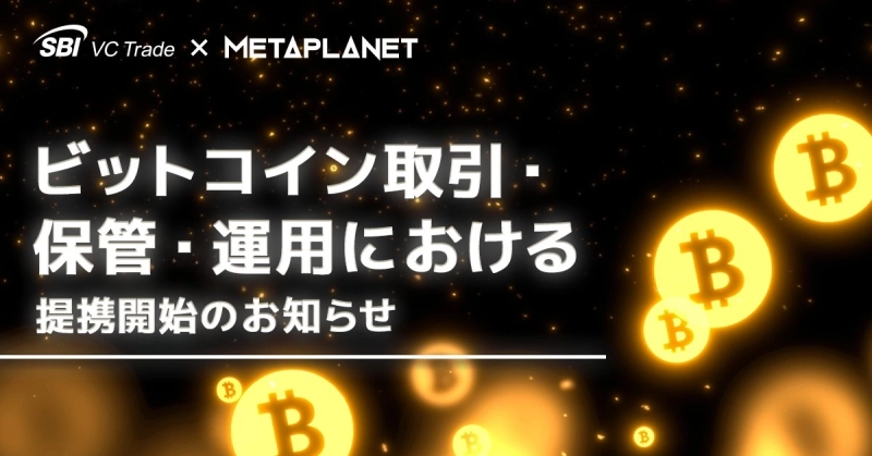 - SBI VC 트레이드는 메타플래닛과의 파트너십을 통해 비트코인 거래·보관·운용을 지원한다고 밝혔다.