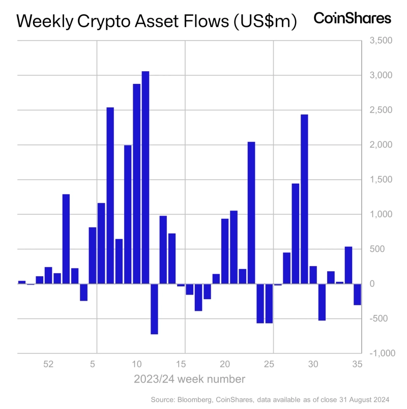 지난주 디지털 자산 투자 상품에서 무려 3억500만달러의 자금이 유출된 것으로 나타났다.