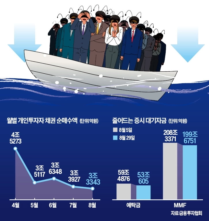 금융투자협회에 따르면 지난달 말 기준 투자자 예탁금은 52조1292억원으로 1달만에 6조원 이상 줄었다. 월간 기준으로는 2개월 연속 감소했다.