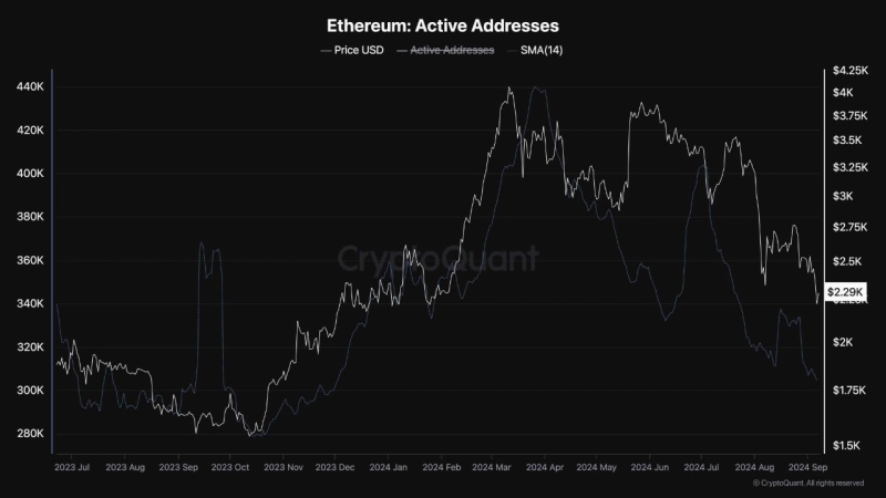 9일(현지시간) 크립토퀀트 저자 ShayanBTC는 "이더리움의 활성 주소 수가 2024년 3월 말부터 급격한 감소세를 보이며 사용자 활동과 거래량이 모두 감소했다"고 전했다.