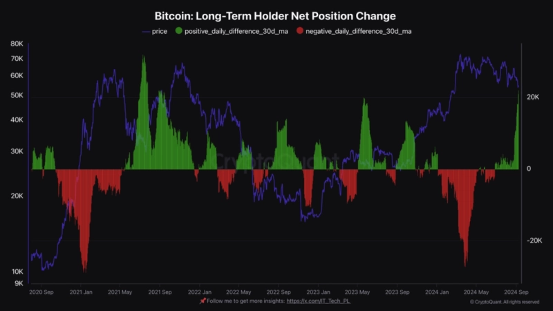 이에 대해 IT테크는 "시장은 단기 보유자에서 장기 보유자로의 손바뀜 현상이 발생하고 있다"고 분석했다. 이어 그는 "장기 보유자의 축적 증가는 가격의 안정화를 의미하며, 잠재적인 반등을 위한 준비 상태로 만들 수 있다"고 덧붙였다.