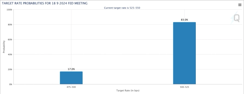 - 시카고 페드워치에 따르면, 미국 Fed가 9월에 금리를 50bp 인하하는 '빅컷' 가능성이 17%로 감소했다고 밝혔다.