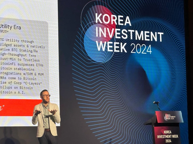 엘리콧 리드는 12일 서울 여의도 콘래드 그랜드볼룸에서 개최된 코리아인베스트먼트위크 2024 (KIW 2024) 블루밍비트 컨퍼런스에서 진행된 '글로벌 웹3 프로젝트가 말하는 한국시장의 중요성' 세션에서 "스택스는 여러 기술적 혁신을 통해 비트코인 레이어2의 선두주자로 비트코인 레이어2로는 유일하게 코인마켓캡 시가총액 50위 안에 자리 잡고 있다"면서 이같이 말했다.