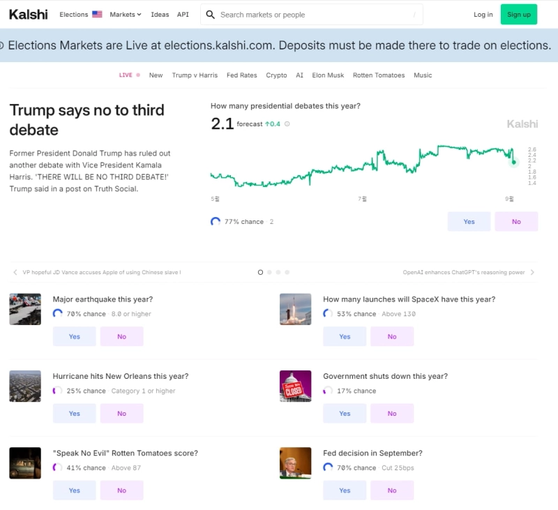 - 법원의 결정에 따라 칼시(Kalshi)는 약 100년 만에 처음으로 선거 도박을 양성화해 큰 관심을 끌었다고 전했다.