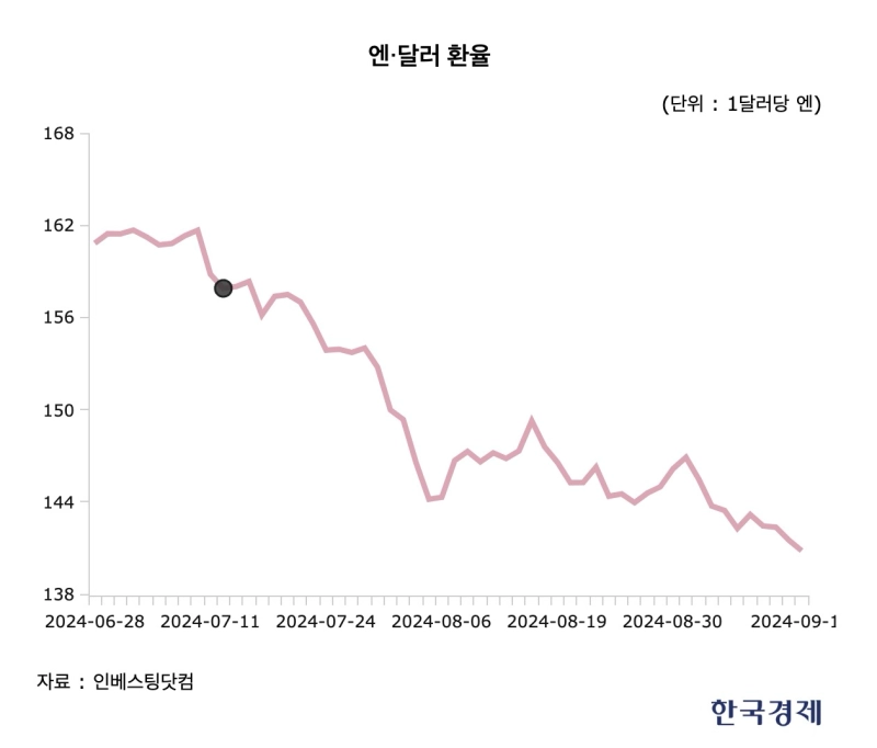 그렇다면 엔 쇼트 페어 트레이딩이 지난달 갑자기 청산된 이유는 뭘까요. 문 팀장은 "지난 7월 13일 미국에서는 도널드 트럼프 공화당 대통령선거 후보가 유세 도중 총격을 받는 사건이 있었고, 이 사건을 계기로 그의 당선 가능성이 크게 높아졌다"며 "이어 같은 달 16일 그가 블룸버그 인터뷰에서 엔화 약세를 용인하기 힘들다는 입장을 재차 강조한 게 시장에 영향을 줬을 것"이라고 했습니다. 엔화의 추가 강세 전망이 시장에서 힘을 얻으면서 엔 쇼트 페어 트레이딩 포지션 청산이 가속화했다는 건데요. 실제로 1달러당 엔화 가격은 지난 7월 10일 161.26엔에서 지난 8월 5일 141.68엔으로 10% 이상 급격히 주저앉았습니다.