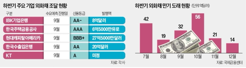 만기 도래 외화채 물량이 많다는 점도 발행이 증가하는 이유다. 국제금융센터에 따르면 올해 말까지 만기가 돌아오는 외화채는 총 123억달러에 달한다.