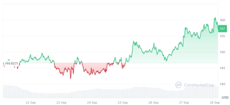솔라나 코인 시세도 주요 저항선을 돌파하면서 추가 상승 가능성이 높아지고 있다. 아슈 골라 코인텔레그래프 연구원은 “미 Fed의 통화정책 완화로 위험자산에 더욱 유리한 환경이 조성됐고, 솔라나는 이같은 분위기에서 수혜를 받고 있다”면서 “솔라나는 주요 저항인 155달러선을 성공적으로 돌파하면 165달러, 174달러를 다음 목표가로 상승할 것”이라고 분석했다.