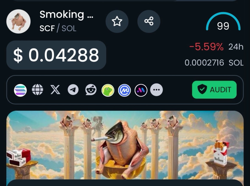 - 스모킹치킨피시(SCF)의 가격이 급등해 50% 상승하며 0.06달러선을 돌파했다고 전했다.