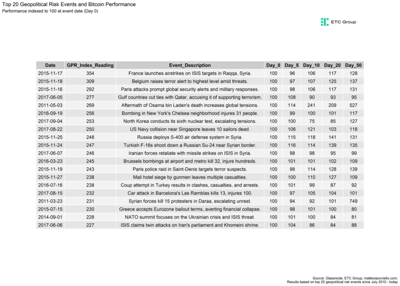 1일(현지시각) 안드레 드라고쉬 비트와이즈 리서치 헤드는 X를 통해 "이스라엘과 이란의 긴장 고조로 비트코인은 급격한 매도세가 발생했다"라면서도 "역사적으로 주요 지정학적 리스크 이후에 상대적으로 긍정적인 성과를 보였다"라고 밝혔다. 이어서 "지정학적 뉴스는 일반적으로 크게 영향을 주지 않는다"라고 덧붙였다.