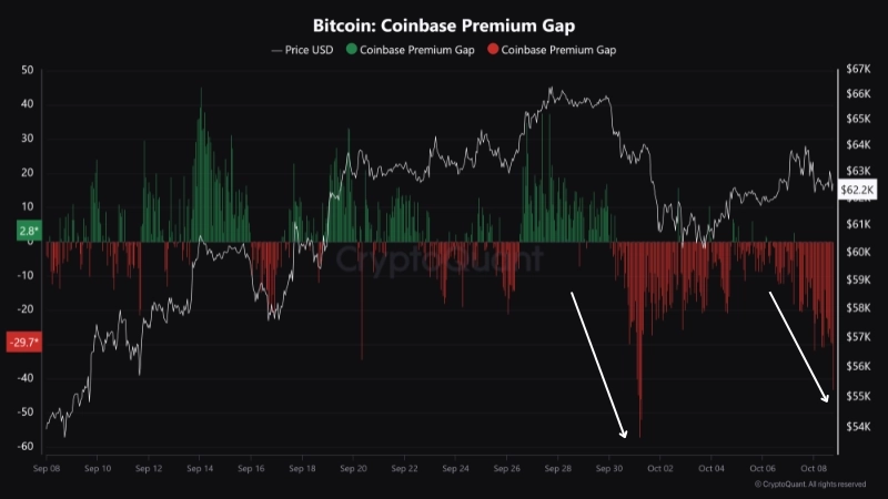 9일 가상자산(암호화폐) 전문 미디어 비인크립토에 따르면 이날 크립토퀀트 기고자 마툰은 "코인베이스 프리미엄은 -41달러 수준을 기록하고 있다"면서 "이는 미국 기관 투자자의 강한 매도 압력을 나타낸다"라고 밝혔다.