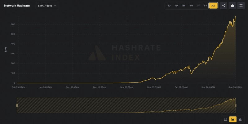 비트코인(BTC) 해시레이트가 사상최고치를 경신했다.