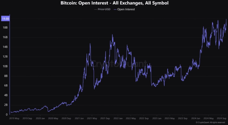 비트코인(BTC) 미결제 약정금(OI)가 사상 최대치를 경신했다.