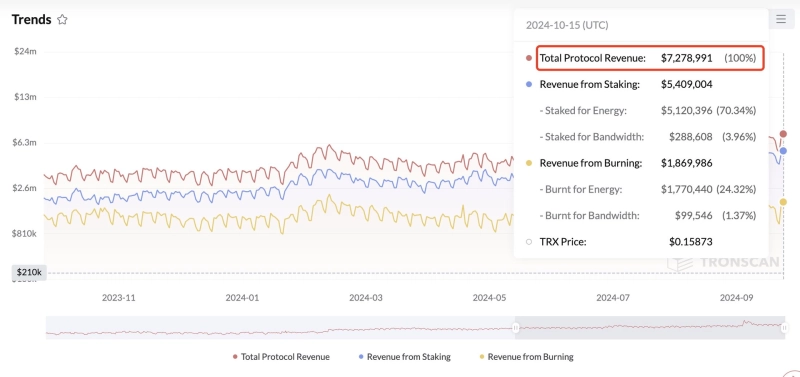 16일 블록체인 데이터 분석업체인 룩온체인은 X(옛 트위터)를 통해 "지난 15일 당일 기준 트론 네트워크의 수익은 728만달러(약 99억원)을 기록했다. 일일 수익금은 지난 일 년 사이 170% 증가했다"라고 밝혔다.