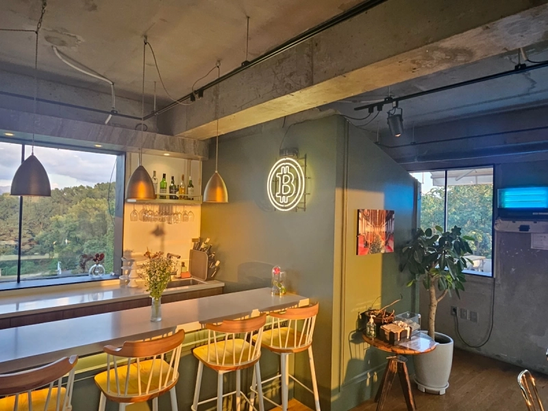 경의중앙선을 타고 능곡역까지 1시간 정도 달려 도착한 이 카페는 비트코인 모양의 전등을 달아놓는 등 실내 장식부터 '비트코인 카페'의 느낌을 풍겼다. 사장님께 비트코인 결제가 가능하냐고 묻자, 비트코인으로 결제하면 10% 할인까지 된다는 답이 돌아왔다.