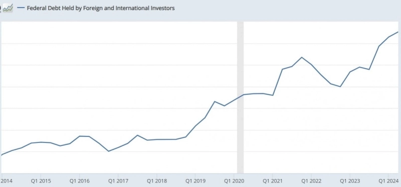 - 외국인의 미국 국채 보유가 사상 최고치를 기록하며, 특히 중국의 국채 보유가 줄어든 반면 일본을 비롯한 다른 국가는 증가했다고 밝혔다.
