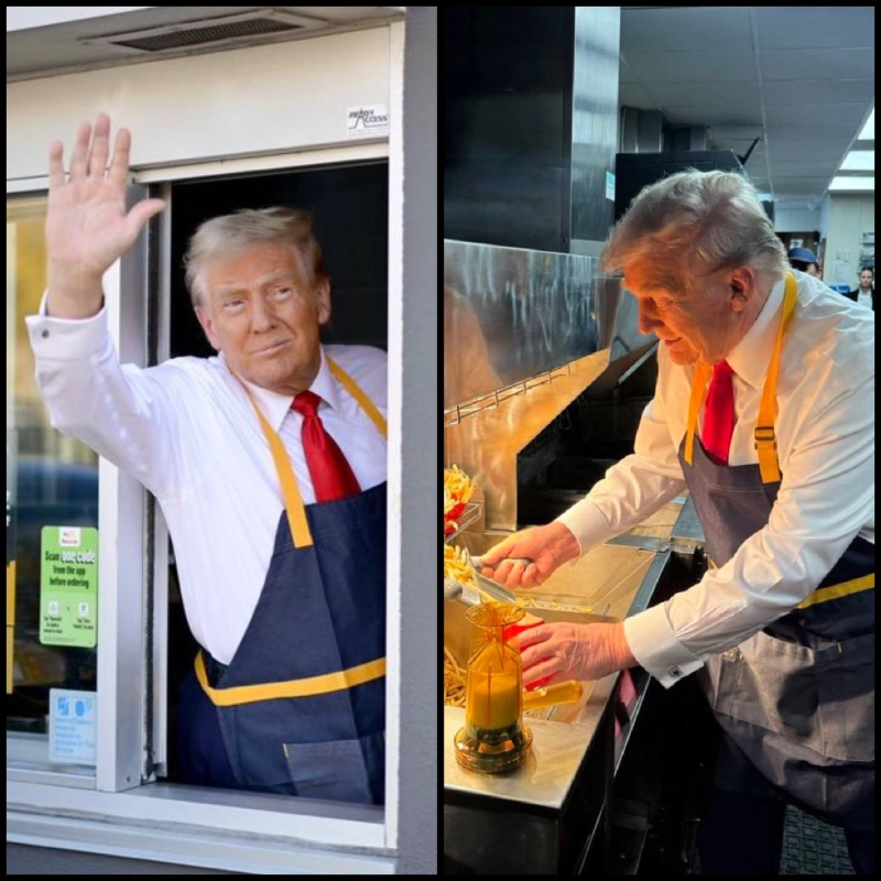 AP통신, 뉴욕타임스 등 외신에 따르면 트럼프 전 대통령은 이날 오후 펜실베이니아주 필라델피아 북부의 벅스 카운티 피스터빌-트레버스에 있는 한 맥도날드 매장을 방문했다. 그는 양복 재킷을 벗고 앞치마를 두르고 카운터 뒤에서 감자튀김을 만들고 드라이브스루에서 직접 주문받았다.