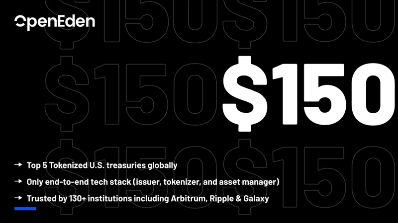 22일(현지시간) 가상자산(암호화폐) 전문 매체 크립토뉴스에 따르면 오픈에덴은 엑스(트위터)를 통해 "오픈에덴의 미국 재무부 국채 토큰화 상품 'TBILL Vault'이 총 락업 예치금(TVL)이 1억5000만달러를 넘어섰다"며 "이는 해당 상품에 대한 수요가 증가하고 있음을 나타낸다"고 전했다.