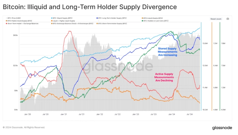 최근 비트코인은 현물 수요와 공급이 모두 감소세를 보이고 있다는 관측이 나온다. 온체인 분석 플랫폼 글래스노드는 주간 보고서를 통해 “암호화폐 시장에서 비트코인 (현물) 수요와 공급은 모두 감소세를 보이고 있다”면서 “지금은 비트코인의 수요와 공급이 ‘폭풍의 눈’처럼 일시적으로 균형을 맞추고 있지만 가까운 미래에 변동성이 높아질 것으로 예상된다”라고 밝혔다. 보고서는 이어 “신규 투자자의 수익은 크게 감소하지 않았다. 향후 깊은 약세장으로 내려갈 가능성은 적을 것”이라고 덧붙였다.
