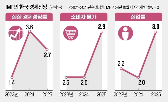 국제통화기금(IMF)은 24일(현지시간) 그동안 상대적으로 부진했던 한국의 내수 부문이 한국은행의 통화정책 전환(피벗) 등을 계기로 살아날 것이라고 전망했다.