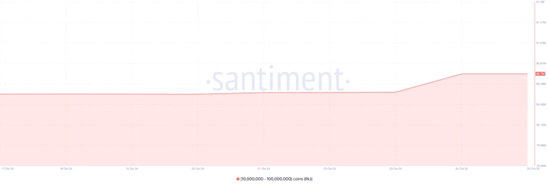 더불어 센티멘트 데이터에 따르면 1000만 개에서 1억 개의 INJ를 보유한 주소의 잔액은 8049만 개에서 8070만 개로 늘어났다.
