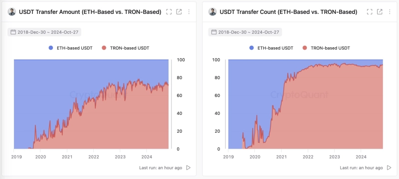 - 테더와 트론 블록체인을 통해 거래가 유통되고 있으며, 특히 테더는 스테이블코인 시장에서 72%의 점유율을 차지하고 있다고 전했다.