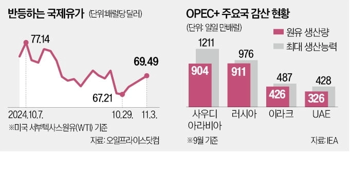 증산 시기를 한 달만 연기한 것은 한 치 앞을 내다보기 어려운 지정학적 상황을 감안한 조치다. 조반니 스타우노보 UBS 원자재 애널리스트는 “원유 시장은 미국 대선 결과와 이스라엘의 보복 공격에 대한 이란의 대응을 주목하고 있다”고 말했다. 6일부터 열리는 미국 중앙은행(Fed) 연방공개시장위원회(FOMC) 회의와 중국 정부 부양책도 변수다. 경제학자들은 Fed가 금리를 0.25%포인트 인하할 것으로 예상한다. 중국은 이번주 전국인민대표대회 상무위원회를 개최해 추가 경기 부양책을 승인할 것으로 전망된다. 다만 로이터통신은 “전문가들은 중국의 예산 대부분이 지방정부 부채 상환에 사용될 것으로 보고 있다”고 전했다.