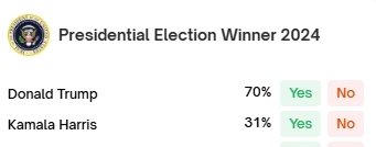 - 폴리마켓 조사 결과에 따르면 트럼프의 2024년 미국 대선 승리 확률이 최근 70%까지 급등했다고 밝혔다.