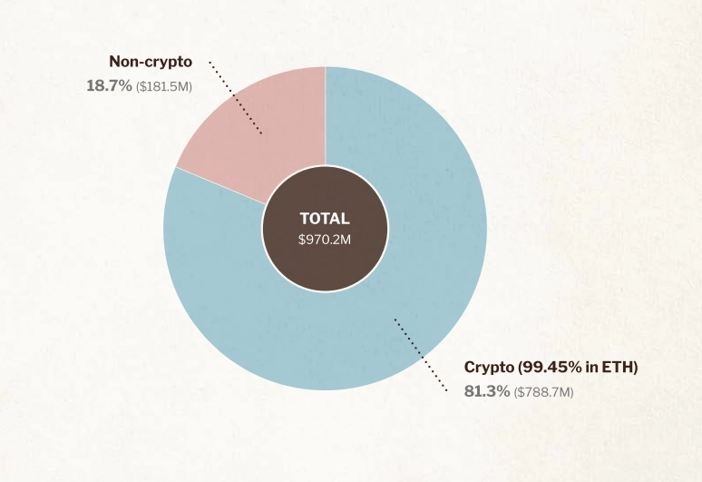 - 이는 가상자산의 보유 비중이 크며, 이더리움이 99.45%를 차지한다고 밝혔다.