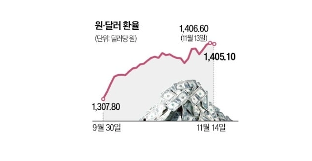 전문가들은 원·달러 환율이 당분간 1400원 위에서 움직일 것으로 전망했다. 정영식 대외경제정책연구원(KIEP) 국제거시금융실장은 “미국 도널드 트럼프 정부의 정책이 완전히 정립되기 전에는 불확실성이 클 것“이라며 ”내년 상반기까지 강달러가 지속될 것”이라고 전망했다. 박상현 iM증권 연구위원은 “트럼프 취임 전까지 환율이 1450원까지 오를 것으로 본다”며 “취임 후 관세 정책 등이 현실화하면 더 오를 수도 있다”고 말했다. NH투자증권도 내년 1분기 환율 상단을 1450원으로 제시했다.