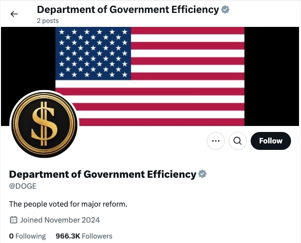 14일 정부 효율성 부서는 DOGE라는 새로운 계정을 개설하고 "초과 근무를 통해 세금을 현명하게 사용할 수 있도록 할 것"이라고 말했다.