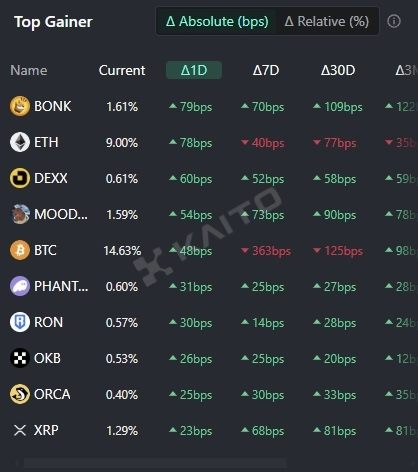 - AI 기반 리서치 플랫폼 카이토(Kaito)에 따르면 현재 가장 관심을 많이 받고 있는 가상자산 키워드는 BONK, 이더리움(ETH), DEXX, 무뎅, 비트코인(BTC) 순이라고 전했다.