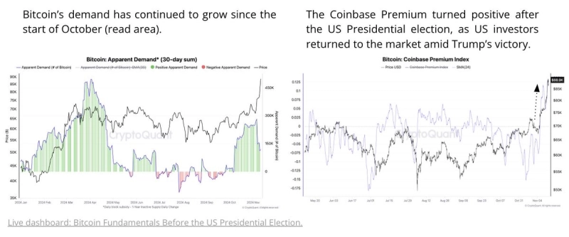 크립토퀀트는 "비트코인의 명목 수요가 최근 상승세를 띄고 있다. 이는 새로운 투자자가 시장에 진입하고 있음을 나타낸다"면서 "이 지표는 10월 초부터 긍정적인 상태를 유지 중"이라고 설명했다.