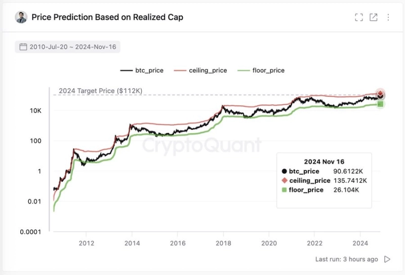 지난 17일(현지시간) 주기영 크립토퀀트 대표는 자신의 X(옛 트위터)를 통해 "비트코인은 강세장에 있어 계속 오를 것이다. 현재 시장으로 시장으로 유입되는 누적 자본을 기준으로 볼 때, 비트코인은 최대 13만5000달러까지 상승할 수 있다"고 전망했다.