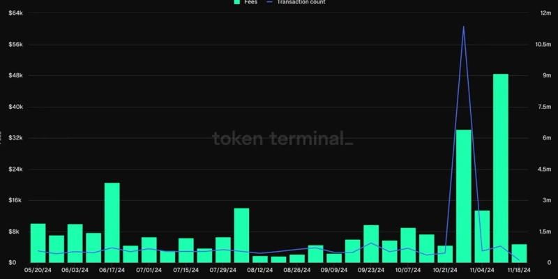 19일(현지시간) 가상자산(암호화폐) 전문매체 디피안트는 토큰 터미널의 데이터를 인용해 11~18일 사이 스타크넷 네트워크에서 약 80만건의 거래가 발생했다고 보도했다. 스타크넷 네트워크의 트랜잭션은 지난달 36만5000건, 지난주 55만건에 불과했으나, 지난 한 주 급등한 것이다.