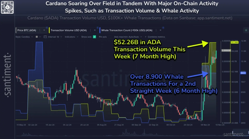 카르다노(ADA)는 최근 가상자산(암호화폐) '큰 손' 고래 투자자의 거래 활동이 급증하면서 상승세를 이어가고 있다는 분석이 나왔다.