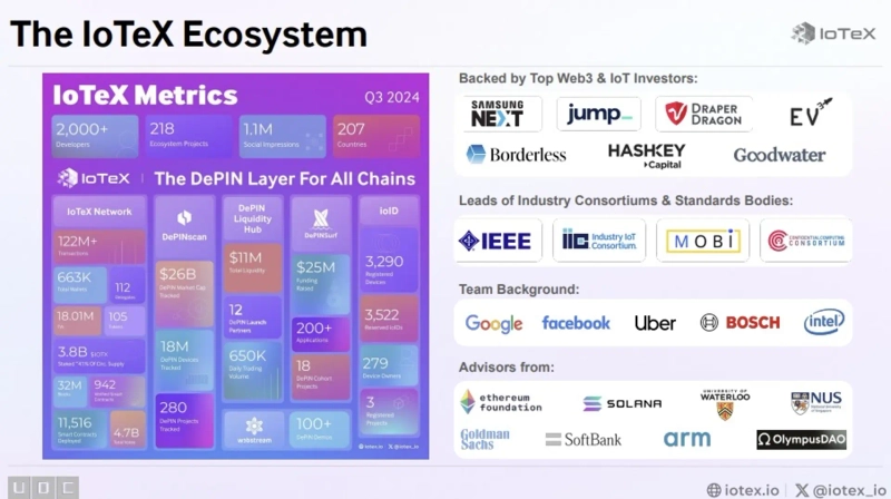 아이오텍스의 모듈형 인프라에 대한 자세한 설명도 들어볼 수 있었다. 디핀 개발을 위한 모듈형 인프라란 디핀 개발을 위한 필요 인프라를 개발자의 입맛에 맞게 제공해주는 플랫폼을 말한다. 로렌 차이 창립자는 "디핀 스타트업은 하드웨어, 미들웨어, 블록체인 기술 등 다양한 기술이 필요하기 때문에 프로젝트의 출시까지 시간과 비용이 많이 소요된다"라며 "아이오텍스의 모듈형 인프라는 비용과 시간을 줄이는 데 도움을 줄 수 있다"고 설명했다.