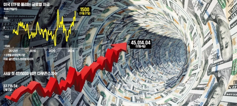 - 미국 증시는 탄탄한 경제 성장과 기업 실적 호조로 글로벌 자금을 빨아들이며 다우지수 45,000 돌파 등 사상 최고치를 기록했다고 전했다.