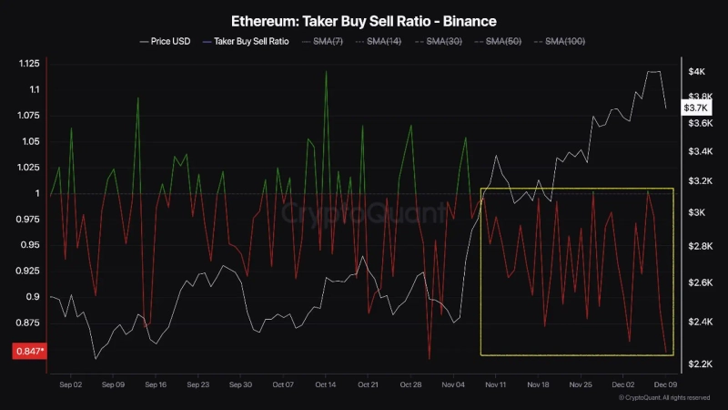이어 그는 "해당 비율은 11월 초부터 마이너스를 보였고, 이는 바이낸스 선물 트레이더들이 이더리움 상승보다는 하락에 베팅하는 경향이 크다는 것을 시사한다"고 분석했다.