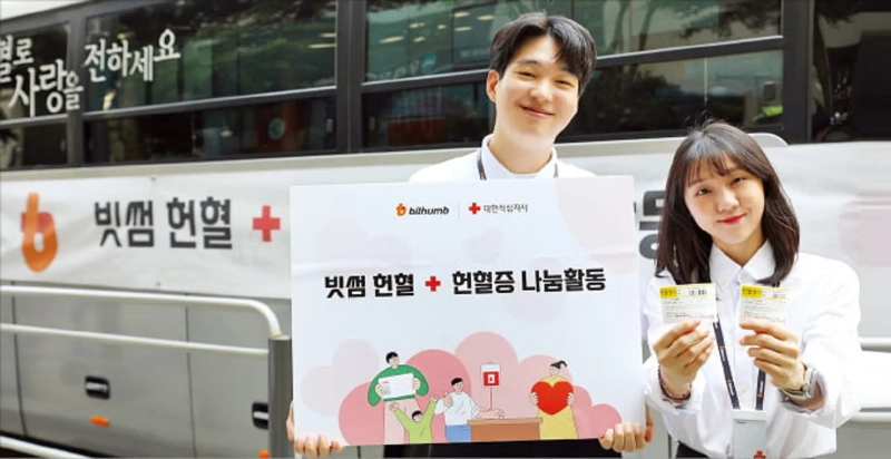빗썸은 임직원의 헌혈을 통해 따뜻한 실천을 하고 있다. 2022년부터 매분기 빗썸 임직원은 헌혈에 참여하고 헌혈증을 기부하고 있다. 지난해 대한적십자사 서울남부혈액원과 ‘헌혈로 생명을 구하는 생명나눔단체’ 업무 협약을 체결했다. 올해는 매분기 헌혈 행사 및 헌혈증 기부를 진행했다. 매회 임직원 100여 명이 자발적으로 참여했다는 설명이다.