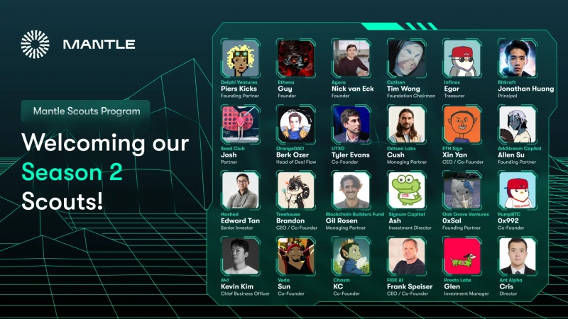 이더리움(ETH) 레이어2 맨틀(MNT)은 맨틀 스카우트 시즌2를 이달 내에 출범할 계획이라고 17일 밝혔다.