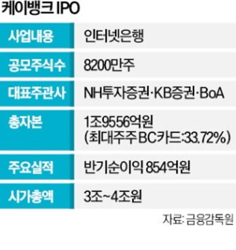 18일 투자은행(IB)업계에 따르면 케이뱅크는 내년 1월 증권신고서를 제출하고 상장 재도전에 나선다. 케이뱅크는 지난 9월 한국거래소 유가증권시장으로부터 상장 예비심사 승인을 받았다. 내년 2월까지 상장을 마치지 않으면 다시 심사받아야 한다. 일정상 다음달에 증권신고서를 제출하고 기관투자가 대상 수요예측에 들어가야 내년 2월 증시 입성을 완료할 수 있다.