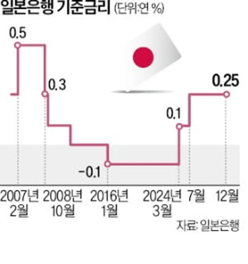 일본은행은 지난 3월 금융정책결정회의에서 기준금리를 17년 만에 올리며 '마이너스 금리'(연 -0.1%)를 종료했다. 7월 회의에서는 기준금리를 연 0~0.1%에서 연 0.25%로 인상했다. 이후 9월과 10월에는 금리를 동결했다. NHK는 일본은행 결정과 관련해 "내년 춘계 노사협상(춘투)의 임금 인상 움직임이나 도널드 트럼프 미국 대통령 당선인의 정책 등 영향을 지켜봐야 할 것이라는 의견에 따라 추가 금리 인상을 보류한 것으로 보인다"고 전했다.