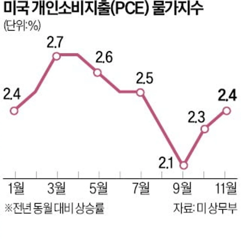 미국 중앙은행(Fed)이 금리 수준을 결정할 때 가장 중요한 지표로 삼는 개인소비지출(PCE) 가격지수가 두 달 연속 상승했다. 이에 따라 Fed가 내년 금리 인하 속도를 조절할 가능성이 한층 더 높아졌다는 분석이 나온다.